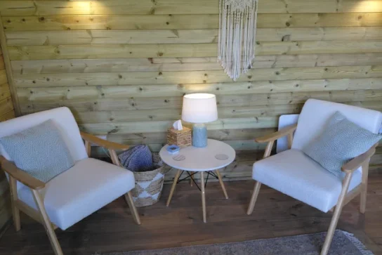 My designated therapy space is a log cabin set within my garden, offering a peaceful, confidential and private environment where you can feel safe to pause and reflect.
